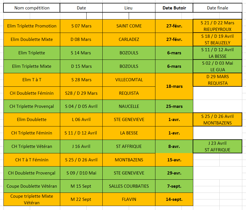 Vous trouverez ci dessous le récapitulatif des dates butoir des inscriptions pour les différents championnats.